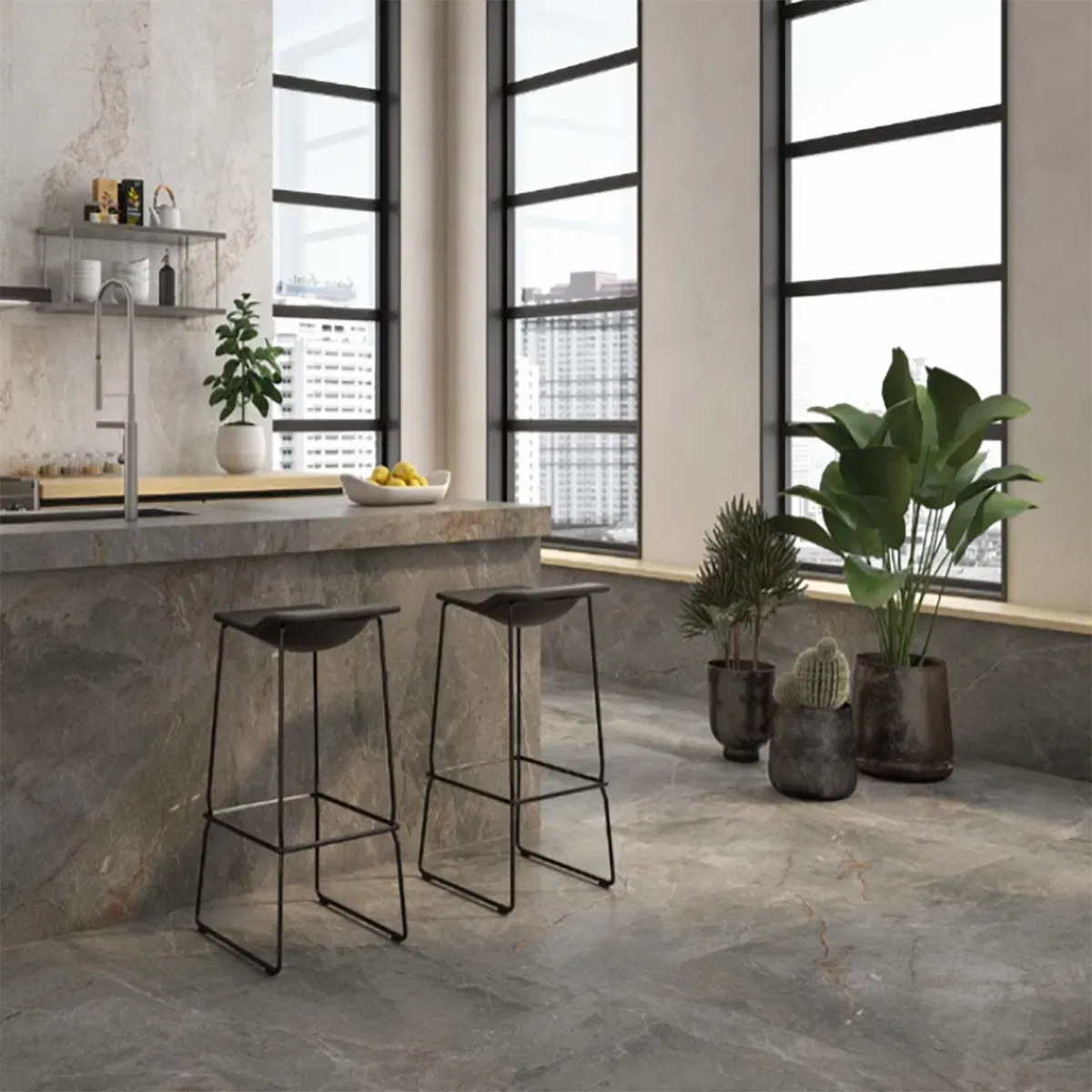Luxury Grey Stone Porcelain with Bronze Vein Throughout